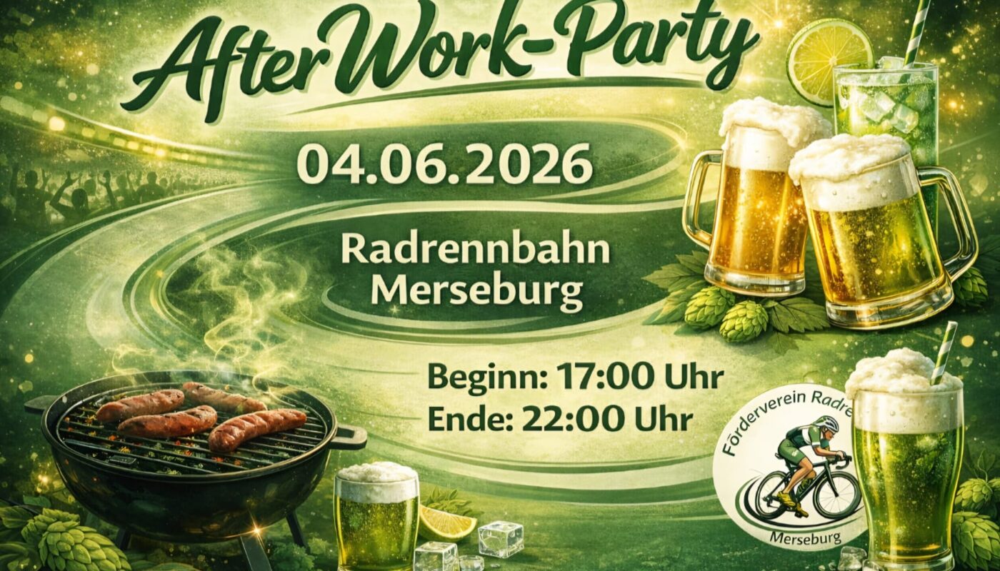 wir laden Euch herzlich zur After-Work-Party am Donnerstag, den 4. Juni 2026 auf der Radrennbahn Merseburg ein! Verbringt mit uns einen entspannten Sommerabend in besonderer Atmosphäre und lasst den Arbeitstag in lockerer Runde gemeinsam ausklingen.